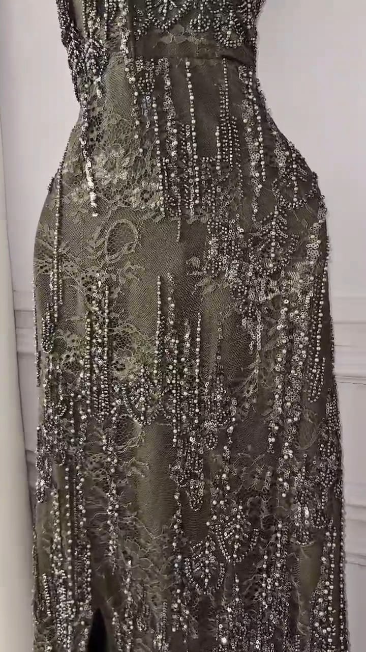 خليكي نجمة أي مناسبة مع فستان السهره الفخم ذا الدانتيل الراقي والخرز اللي يلمع مع كل حركة. تصميمه يبرز أنوثتك ويعطيكي إطلالة ملكية تخطف الأنظار في كل سهرة. مثالي للمناسبات الخاصة والسهرات اللي تبين فيها ذوقك الراقي