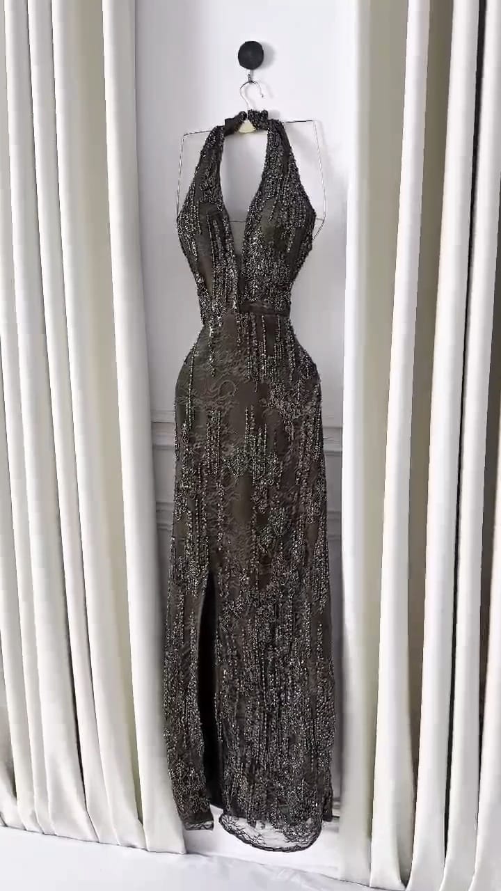 الصفحة الرئيسية اثاث فستان سهره دانتيل وخرز – إطلالة ملكية