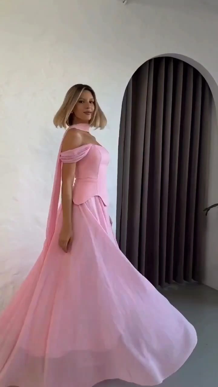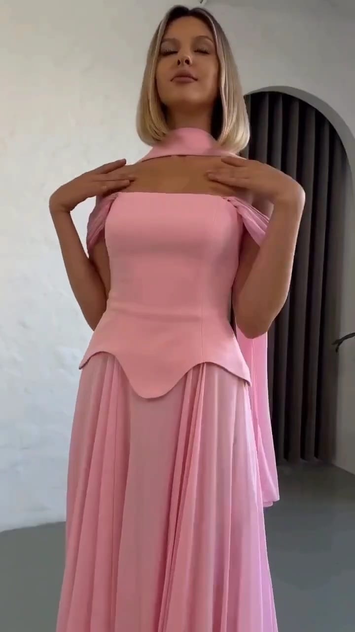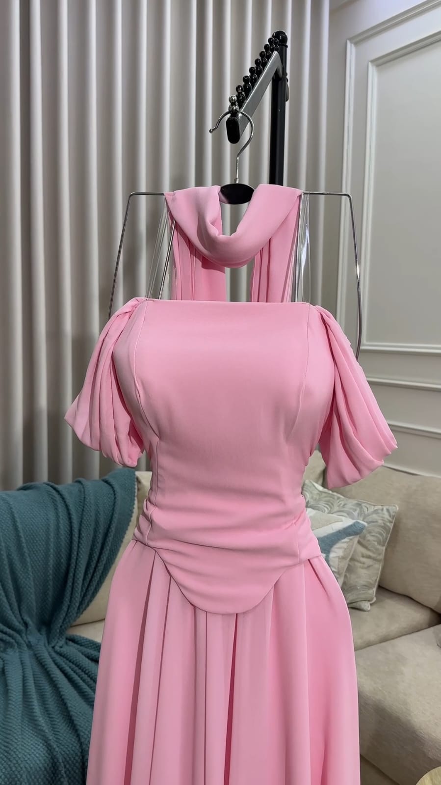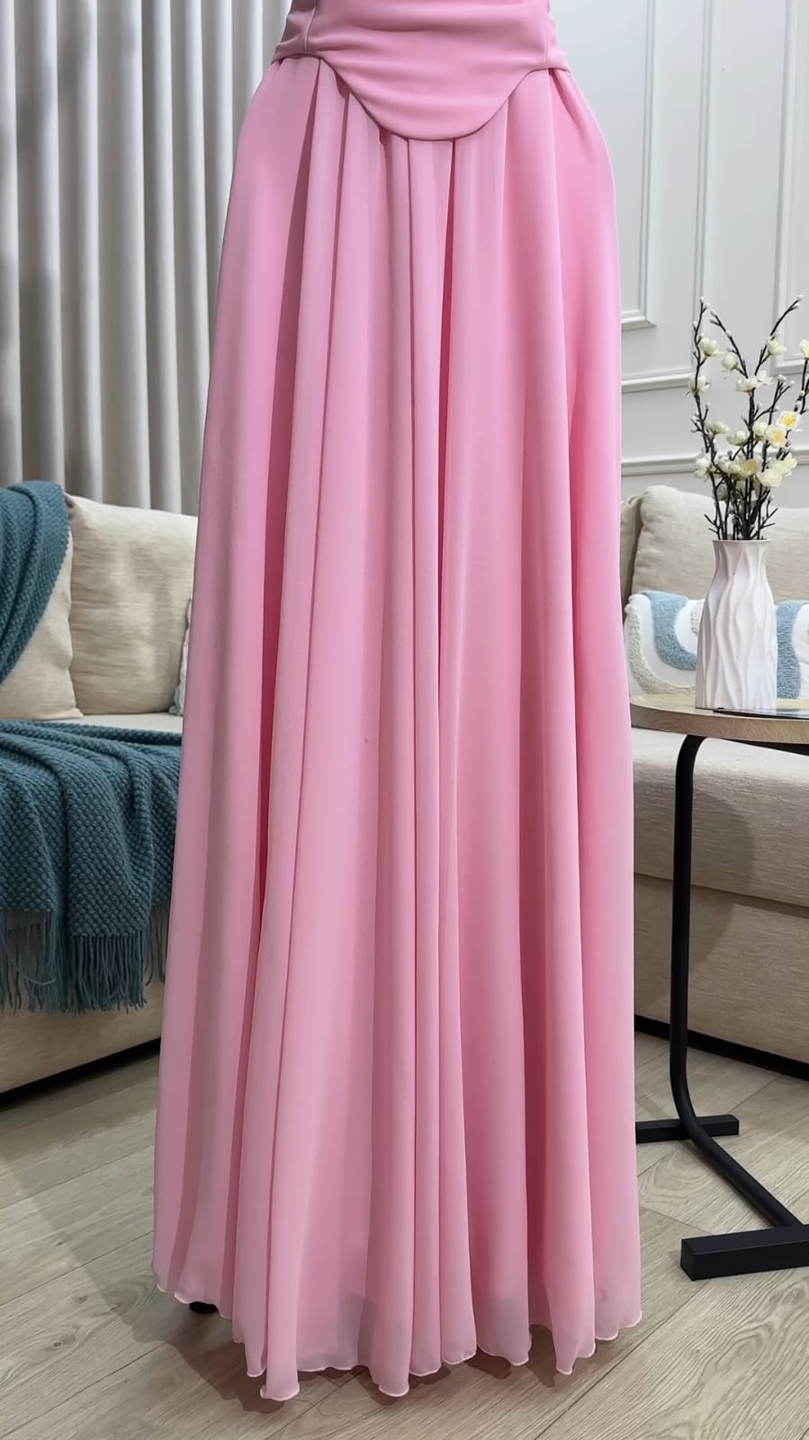 فستان أنيق للمناسبات بخامة الجورجيت الناعمة اللي تعطيك انسيابية ورقّة في كل خطوة. تصميم راقي وبسيط يبرز جمالك بدون تكلّف، ومثالي للحفلات والمناسبات اللي تبينين فيها بإطلالة هادية وفخمة بنفس الوقت.
